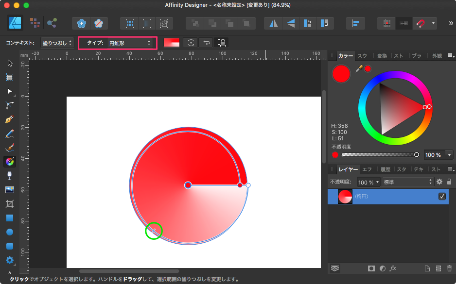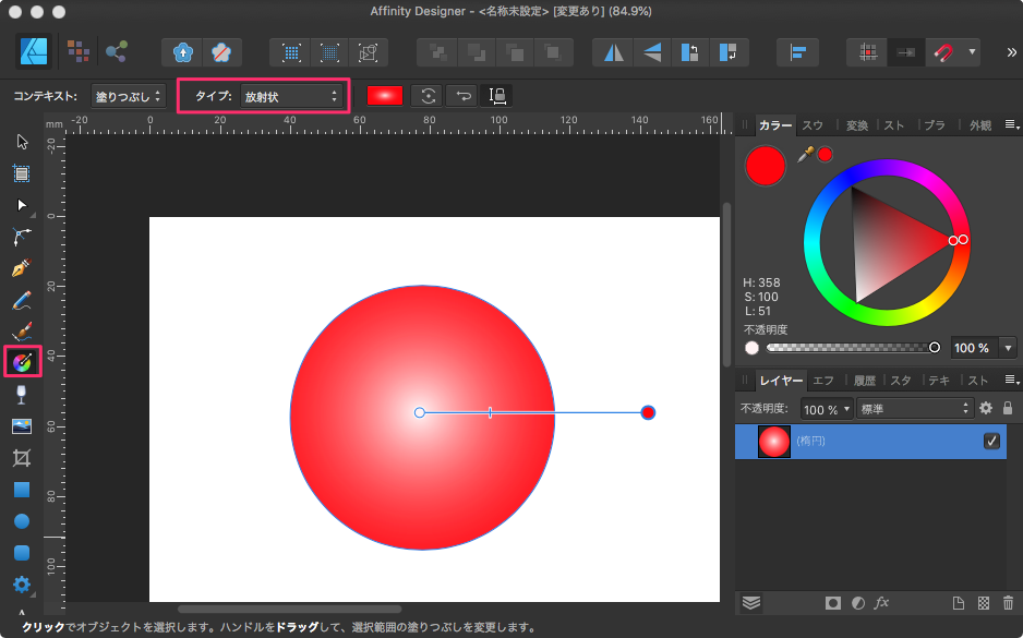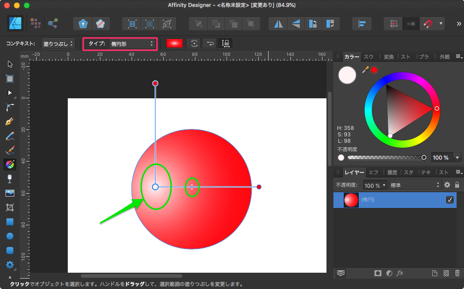 楕円形は、楕円状にグラデーションになる。
