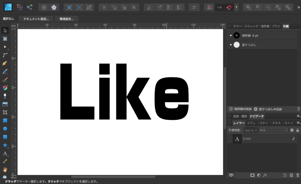 e文字の中がくり抜かれ、レイヤーも1つになっている。