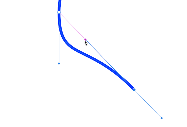 このラインの最後のポイントを選択すると2つのコントロールハンドルがあります。