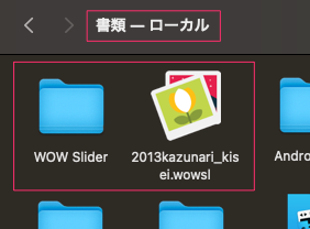 ファイルは表示されているパスのところに作成される。ここで書類の中にプロジェクトファイルとWOW Sliderディレクトリにファイルが書き出される。