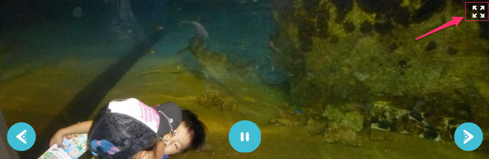 このフォトスライダーでは ”右に回る” と ”左に回る” ボタンを使用することで画像の角度を回転して替える事が出来ます。