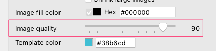 アウトプットPNGとJPEG形式画像のクオリティを”画像クオリティ”メーター(0%〜100%)を調整することでコントロール出来ます。画像と同じサイズなら100%で良いと思う。