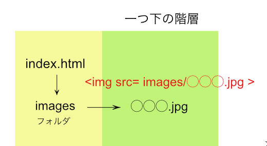 同じ階層に「images」ディレクトリがあるので<img src=”images/○○○.jpg>“、