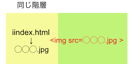同じ階層に「index.html」と「○○○.jpg」があるなら、ファイル名を書くだけ。