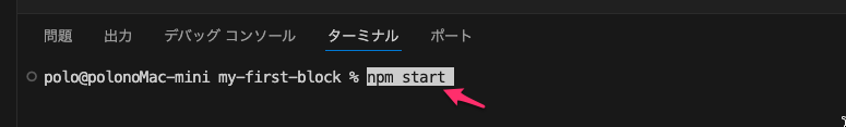 移動が完了したら以下のコマンドを実行(最後の my-first-block はプラグイン名になる)