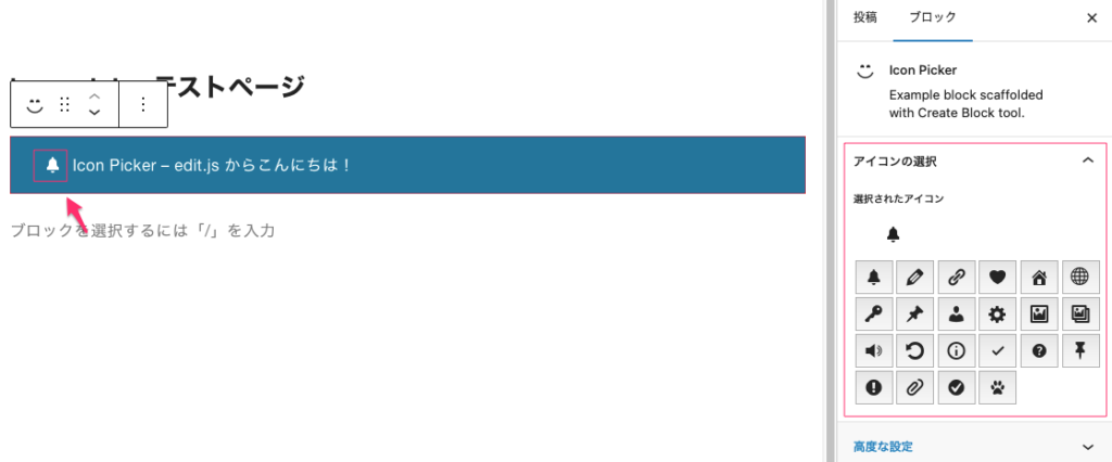 これを作成する。アイコンピッカーで選択したアイコンをブロック内に表示する。