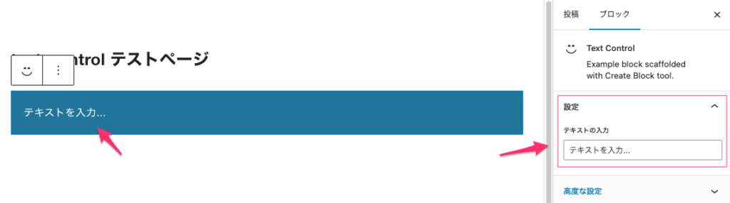 テキストコントロール:https://developer.wordpress.org/block-editor/reference-guides/components/text-control/