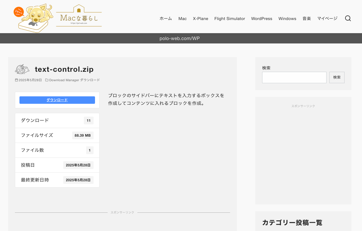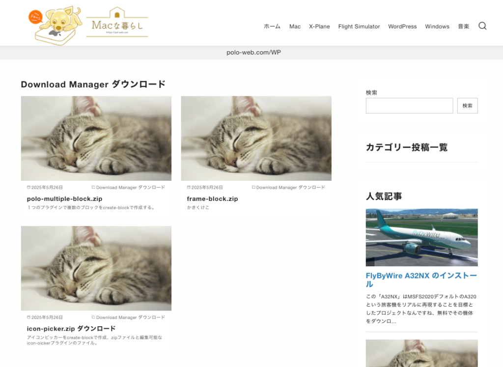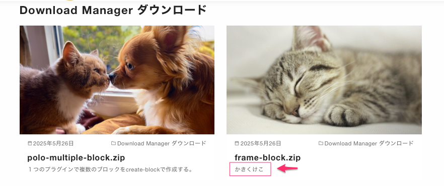 ブロックは無いがショートコードで好きな位置にダウンロードを設置できるのであんまり問題ない。