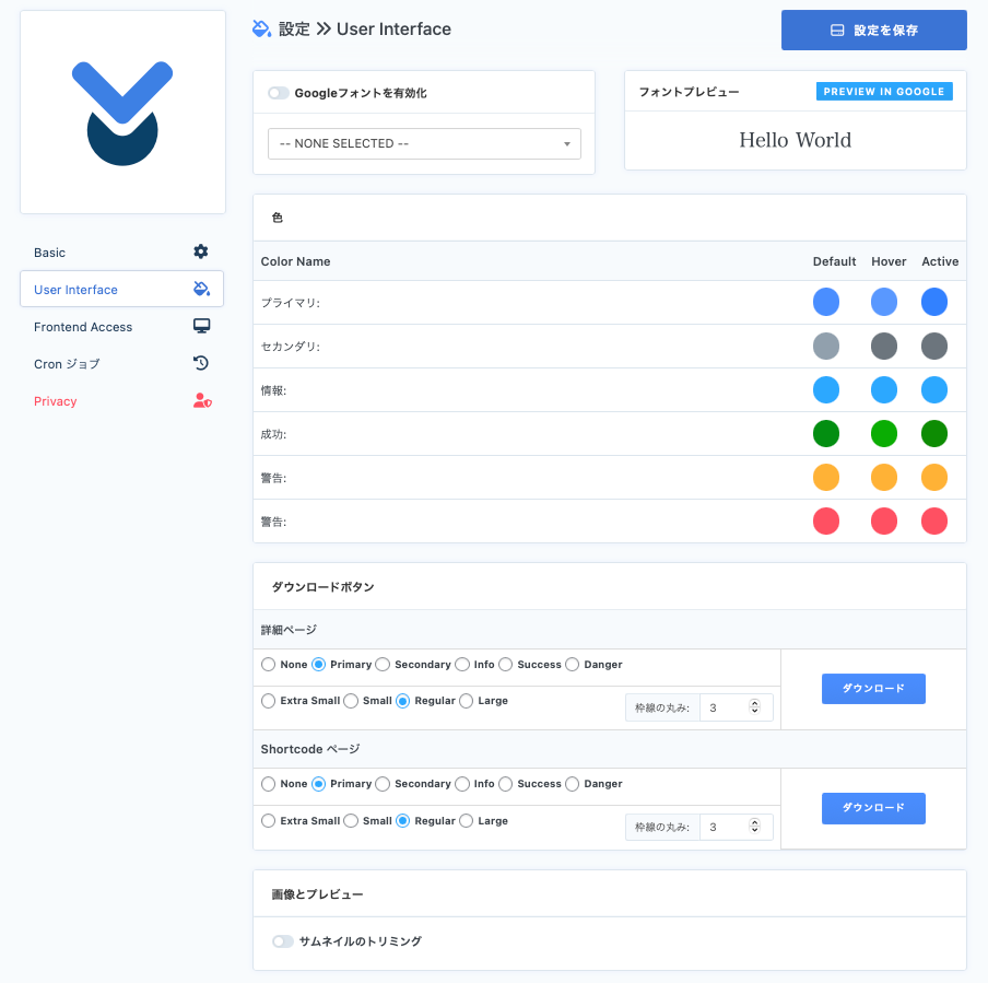 ダウンロードボタン / 詳細ページ:ボタンの色を設定できる。右にプレビューが出る。