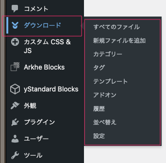 インストールが完了して有効化すると以下のようなメニュー「ダウンロード」が表示される。