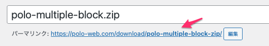 作成したファイルのダウンロードページを見るには「ダウンロード -> すべてのファイル -> 編集」をクリックして、以下のように開いたタイトルの下にあるパーマリンクからページを開くことができる。