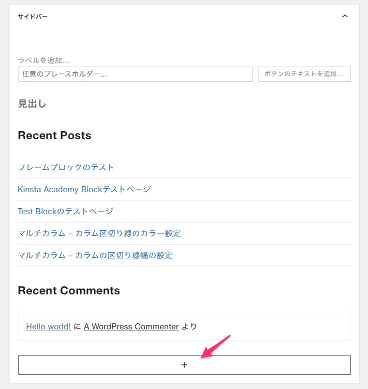 サイドバーに入れる。外観 -> ウイジェット -> サイドバー 以下のプラスボタンをクリック。