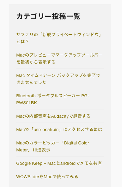 ショートコードを使って、こんな感じで投稿ページや固定ページにリスト表示することができる。