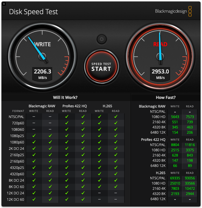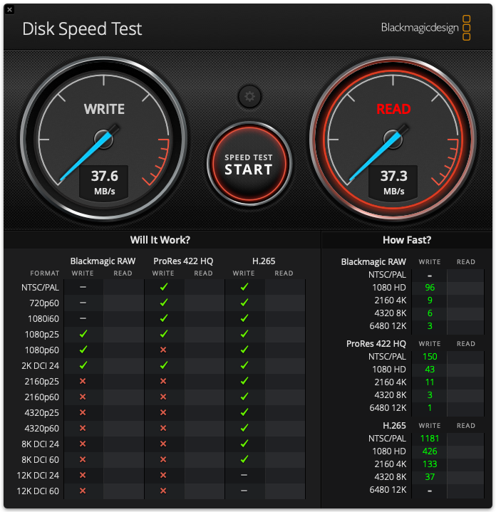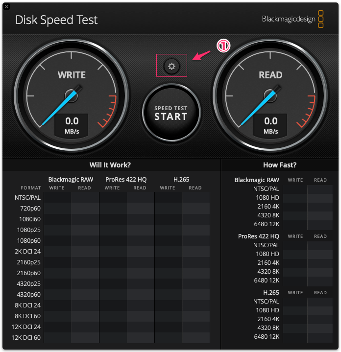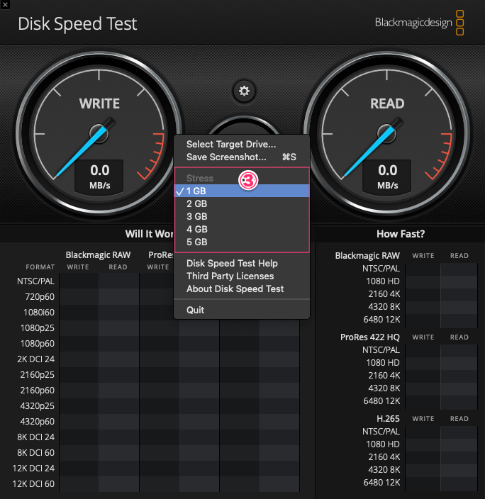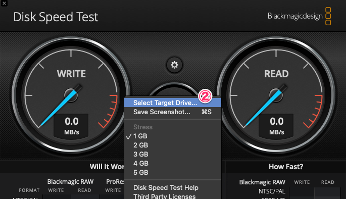 Blackmagic Disk Speed Testの使い方はとても簡単、