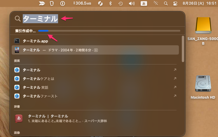 - Spotlightの検索結果がおかしい。