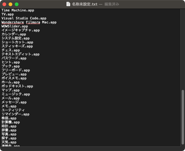 ターミナルを使うと簡単にアプリの一覧を作成できる。