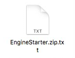 最後の .txt を削除して .ZIP にして、あとは解凍するばEngineStarterフォルダが出てきます。その中には以下のファイルが入っています。