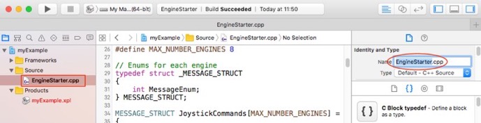 するとプロジェクト名とProductsフォルダ内のxpiファイル名も同じ名前に変更になります。後は同じように「Source」内のcppファイルの名前も変更します。