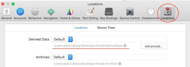XcodeのPreferences…でビルドの出力位置を変更することもできます。