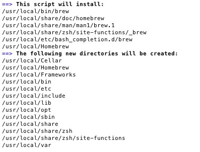 これを実行するとHomebrewだけがインストールされ、いくつかの必要なフォルダが作成されている。