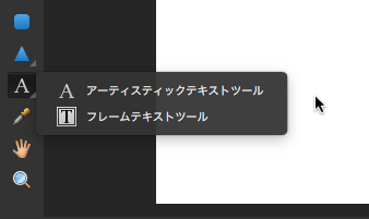フレームテキストツールを作成するには、左側にあるツールバーで、Aアイコンからフレームテキストツールを選択します。そして、好きな領域をドラッグしてフレームを作成します。