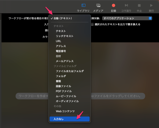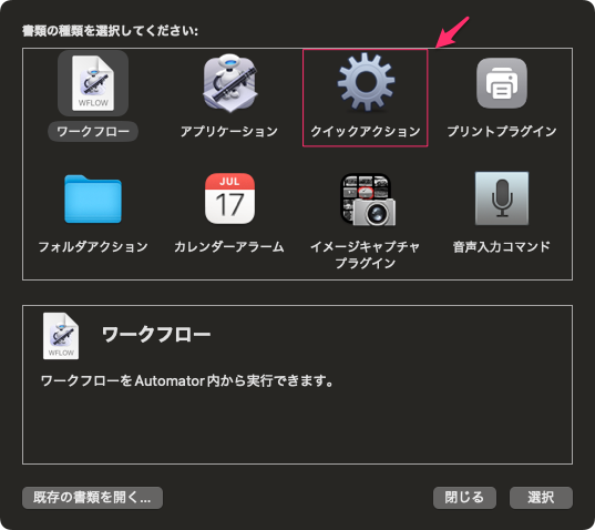実際のAutomatorでのクイックアクションのやり方