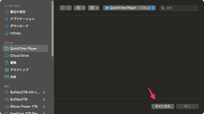 QuickTime Playerを起動、以下の画面が出るが、キャンセルする。