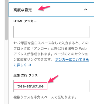 以下では「追加 CSS クラス」に「tree-structure」と入れている。