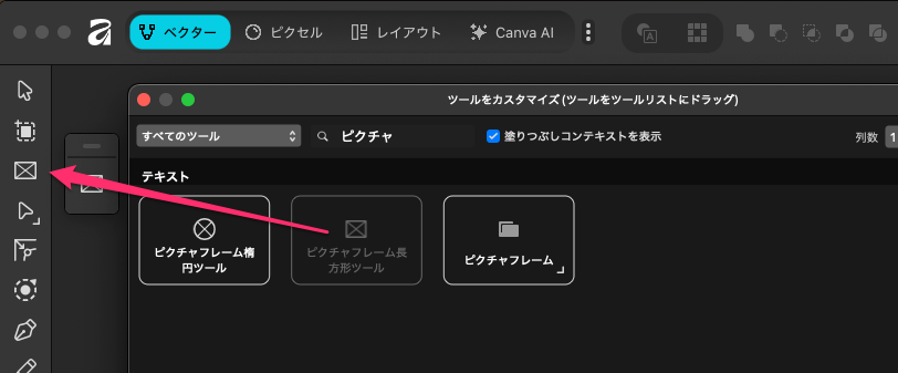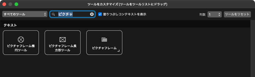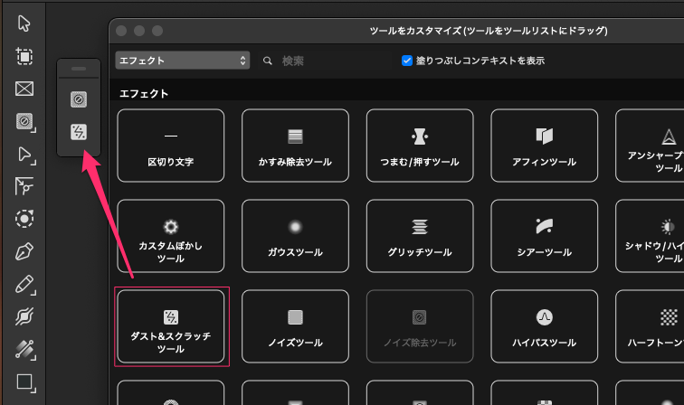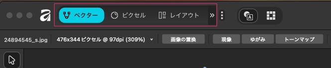 以前はペルソナやAffinity Photoの様なものだったが、現在はコンテキストツールバーに配置されている。