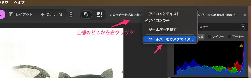 以下の画面が出る。これでツールバーをカスタマイズすることができる。