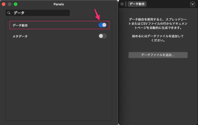 ついでのもう一つデータの結合について、以前のダイアログでなくパネルとして追加されている。