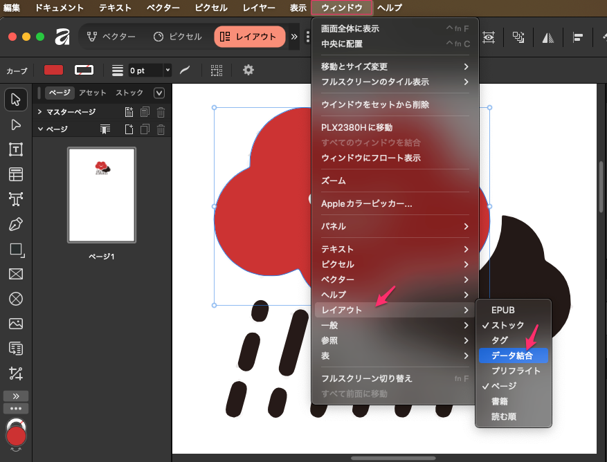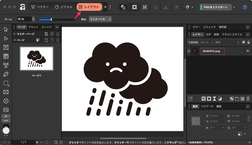 以下の様にpng画像がレイアウトスタジオに貼られている。