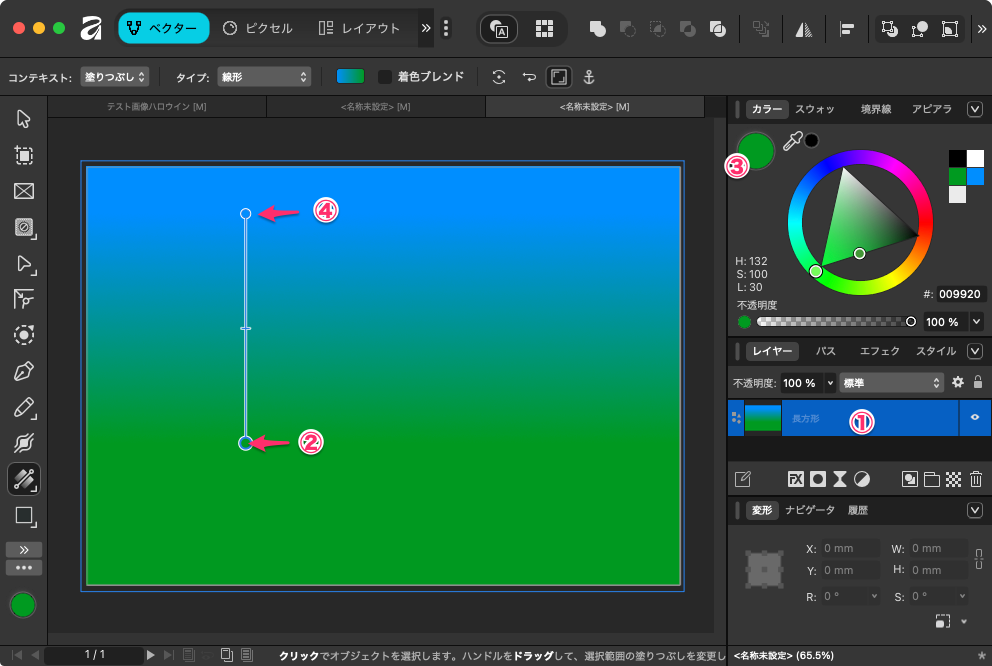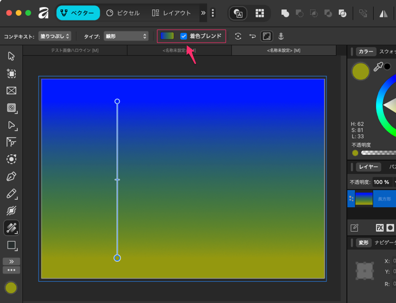 この縦のドラッグ位置によって微妙なグラデーションを設定することができる様になる。