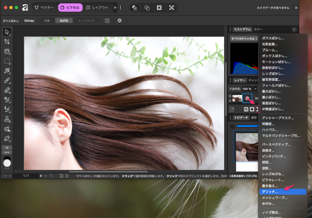 もちろん、Affinityにはライブフィルターレイヤーがある。