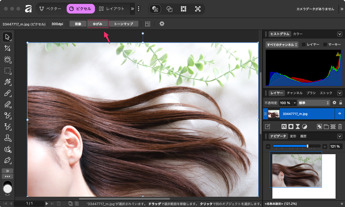 画像を選択、更にゆがみを選択して、以前と同じように変形させることができる。