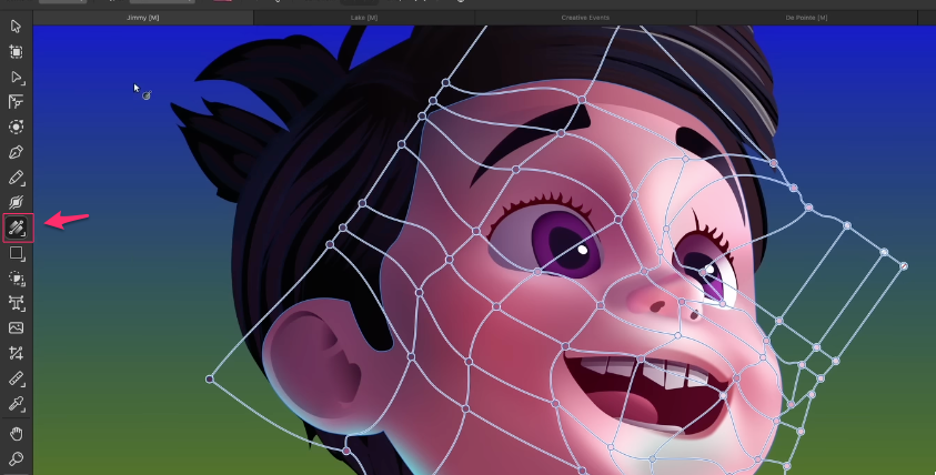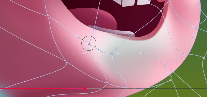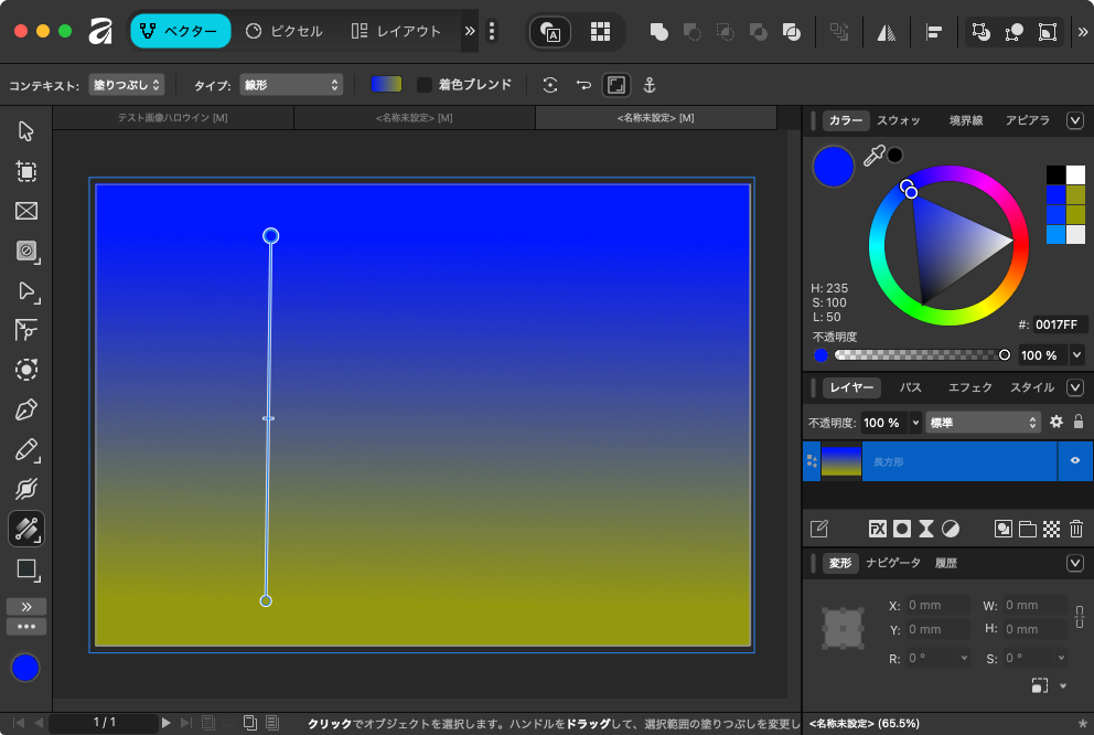 その状態でグラデーションツール(実際は塗りつぶしツールとなっている)をクリックすると既に以下の様な「メッシュ塗りつぶし」が作成されているらしいのでそれが表示されるというわけ。