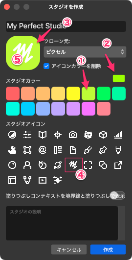 ここでは「My Perfect Studio」と名前を入れて新しいスタジオを作成する。