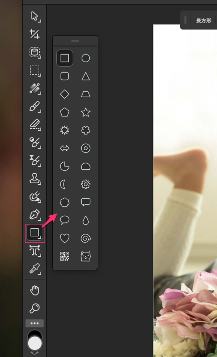 このサブツール、現時点では長方形が選択されており、実際に全ての図形が右に表示されている。