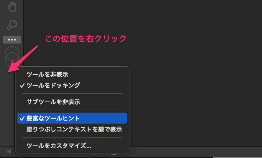 実際にこれらをオフにするには、左側のツールバーを右クリックし、表示されたメニューからオンとオフを切り替えることができる。