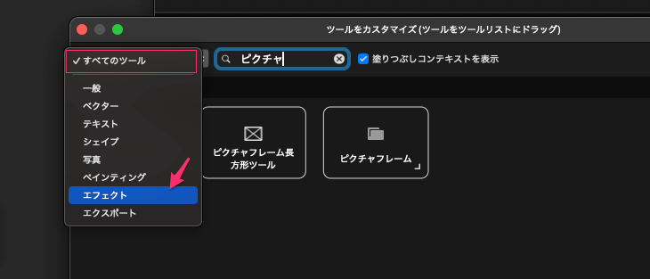 つまり、必要に応じて、よく使うエフェクトのグループとしてまとめて表示することが可能になるということになる。