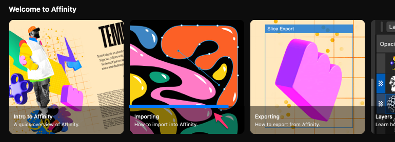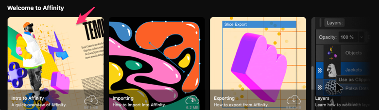 Your project file includes a placed Affinity file. It has been added as shown in the video and hidden for us to use later.