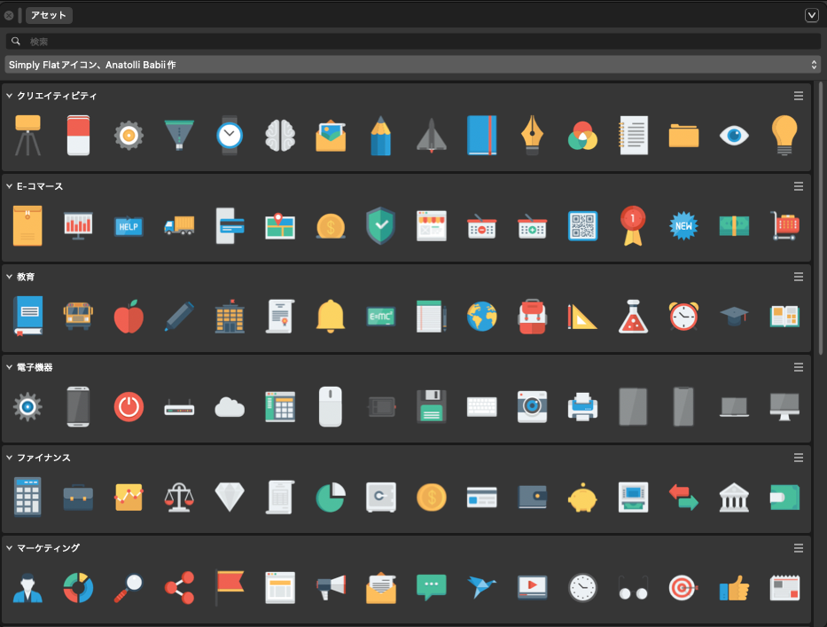 Affinityで作成した図形を再利用可能なパーツとして保存するには、「アセット」パネルを使用するのが最も効率的な方法。アセットとして保存した図形は、他のプロジェクトファイルでも簡単に呼び出して使用できるようになる。