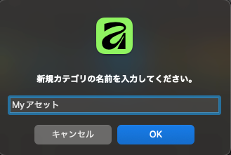 アセットパネルの右上にある>をクリック、「新規カテゴリを作成」を選択。