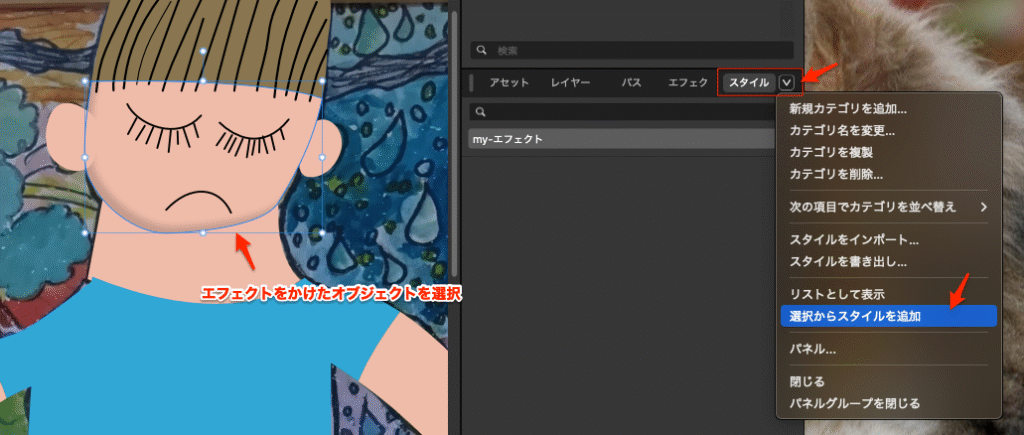 次に、エフェクトを掛けた顔を選択して右上のメニューから「選択からスタイル」を追加を選択。