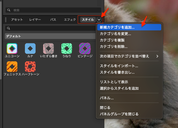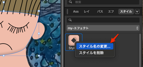 スタイルが登録された、名前を変更するために右クリックで「スタイル名を変更…」を選択。