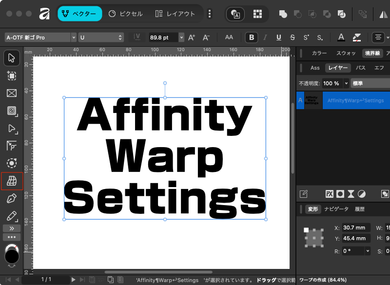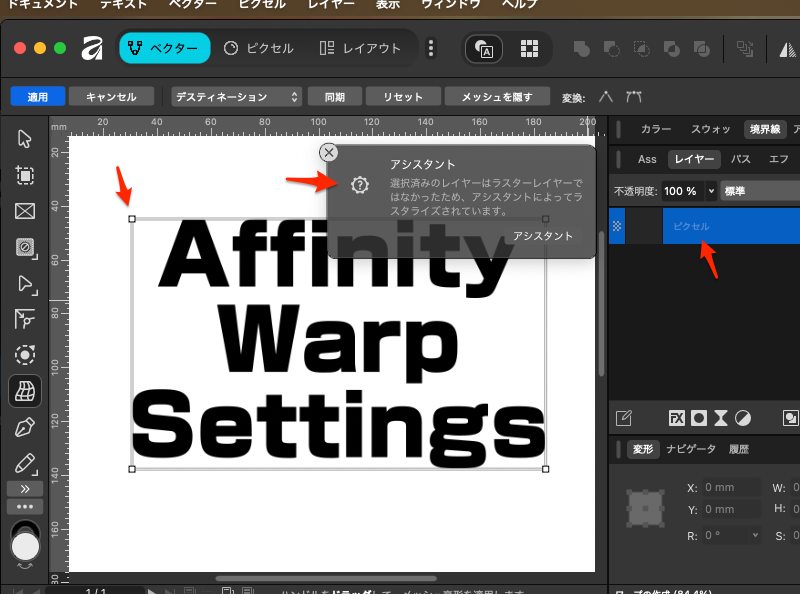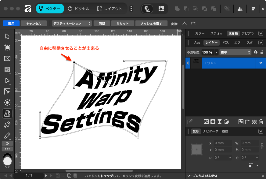 Affinity ベクター形式からのワープ(変形)機能