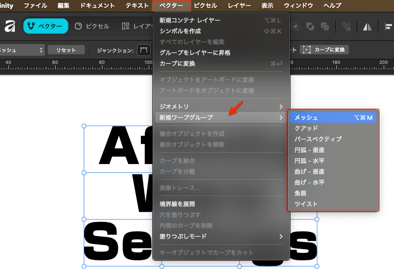 公式チュートリアル:https://www.affinity.studio/ja_jp/help/object-control-warp/