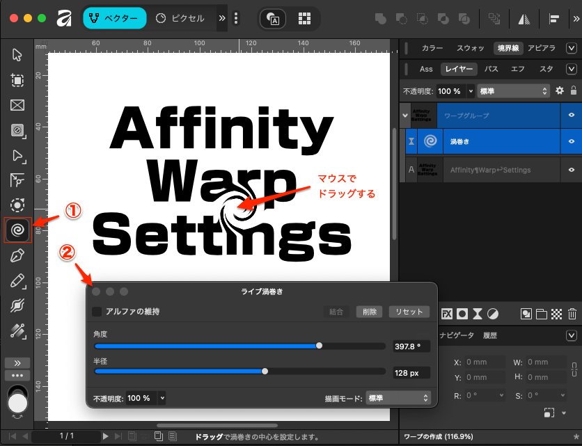 公式チュートリアル:https://www.affinity.studio/ja_jp/help/object-control-warp/