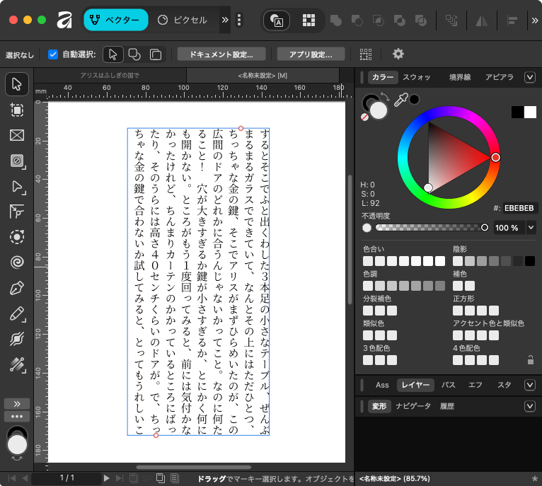 Affinityで普通に「フレームテキストツール」を使ってテキストを流し込む。