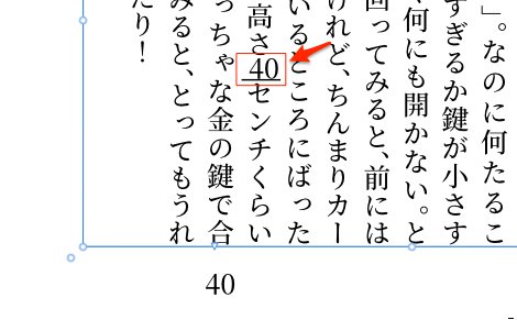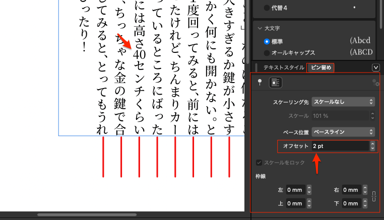 下のようにオフセットを2ptで設定したら40の数字は中心辺りに移動はしたが、これは行間のオフセットなのでその行が広くなっているのが下の赤ラインを見るとわかる。